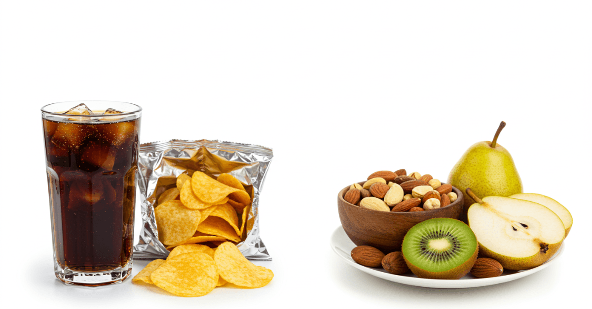 Processed snacks and sugary drinks give you a short burst of energy followed by a crash. Whole foods provide steady, long-lasting fuel for your body and brain.
